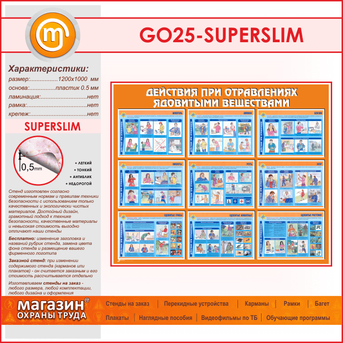 Стенд «Действия при отравлении ядовитыми веществами» (GO-25-SUPERSLIM) в Улан-Удэ купить