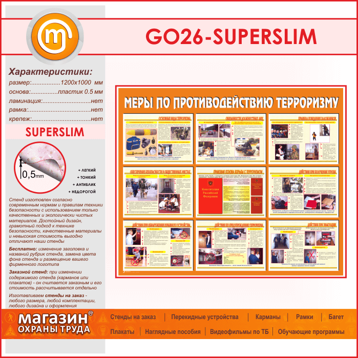 Стенд «Меры по противодействию терроризму» (GO-26-SUPERSLIM) в Улан-Удэ купить