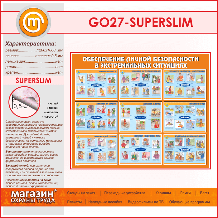 Стенд «Обеспечение личной безопасности в экстремальных ситуациях» (GO-27-SUPERSLIM) в Улан-Удэ купить