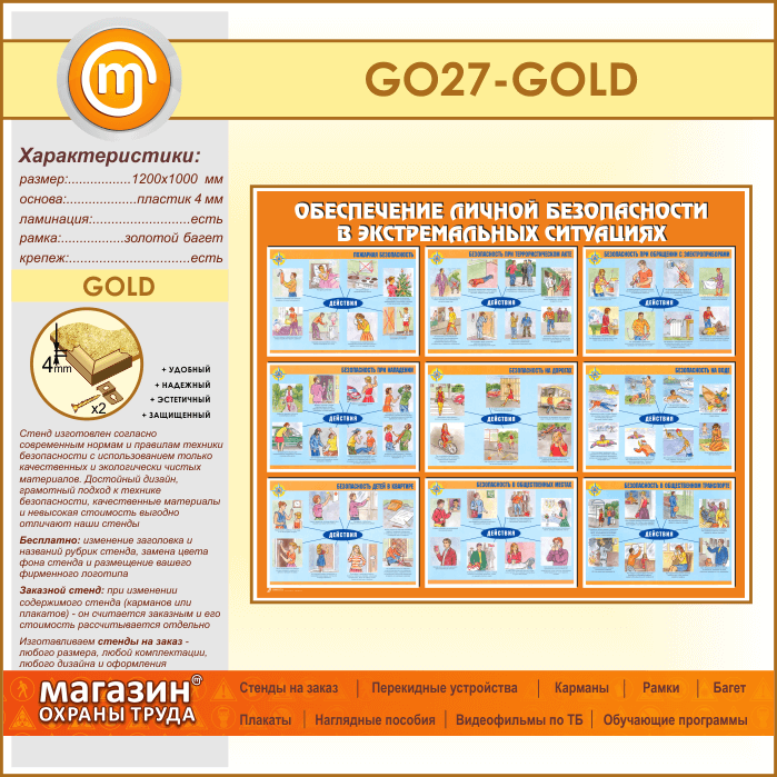 Стенд «Обеспечение личной безопасности в экстремальных ситуациях» (GO-27-GOLD) в Улан-Удэ купить