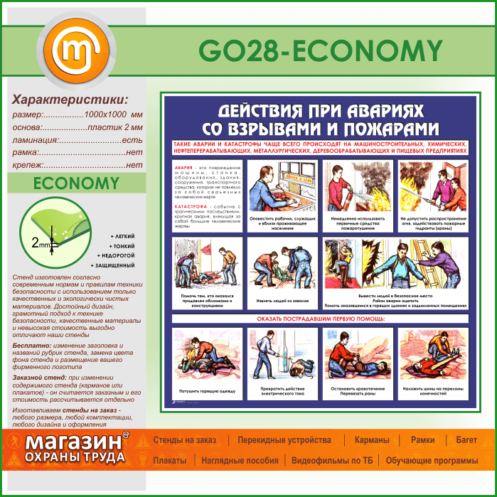 Стенд «Действия при авариях со взрывами и пожарами» (GO-28-ECONOMY) в Улан-Удэ купить