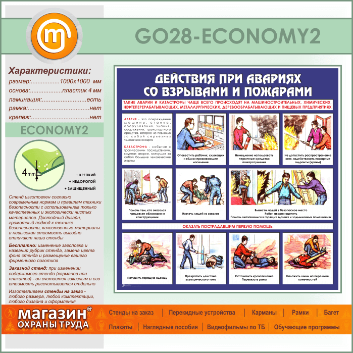 Стенд «Действия при авариях со взрывами и пожарами» (GO-28-ECONOMY2) в Улан-Удэ купить