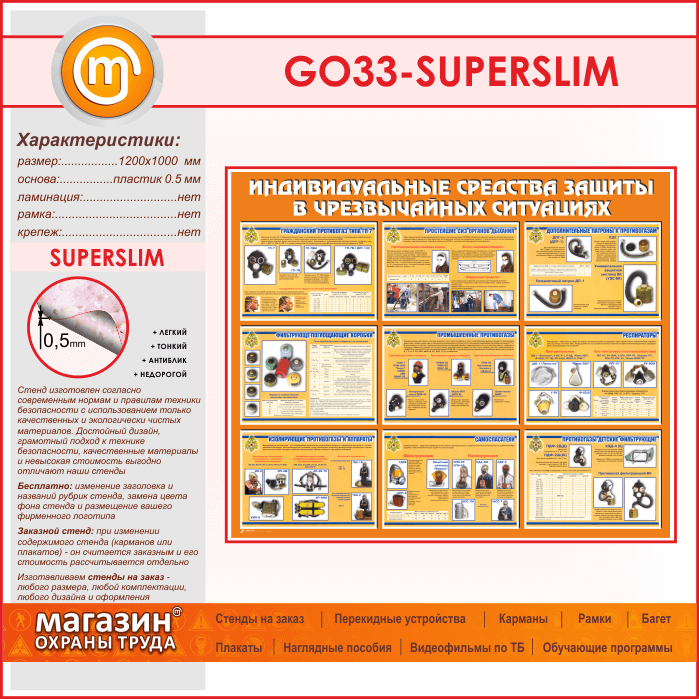 Стенд «Индивидуальные средства защиты в чрезвычайных ситуациях» (GO-33-SUPERSLIM) в Улан-Удэ купить