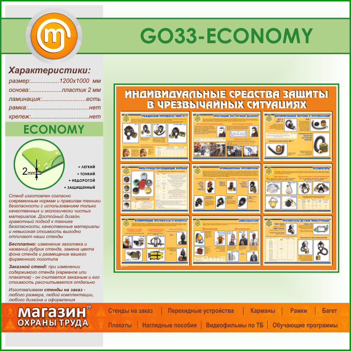 Стенд «Индивидуальные средства защиты в чрезвычайных ситуациях» (GO-33-ECONOMY) в Улан-Удэ купить