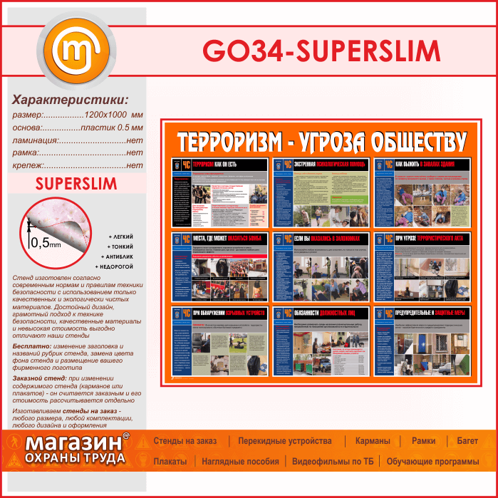 Стенд «Терроризм - угроза обществу» (GO-34-SUPERSLIM) в Улан-Удэ купить