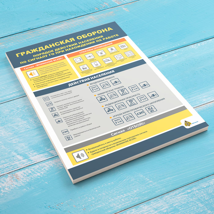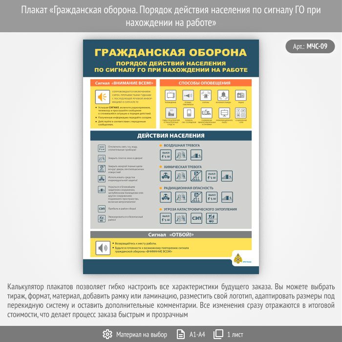 Плакат «Гражданская оборона. Порядок действия населения по сигналу ГО при нахождении на работе» (МЧС-09, 1 лист) в Улан-Удэ купить