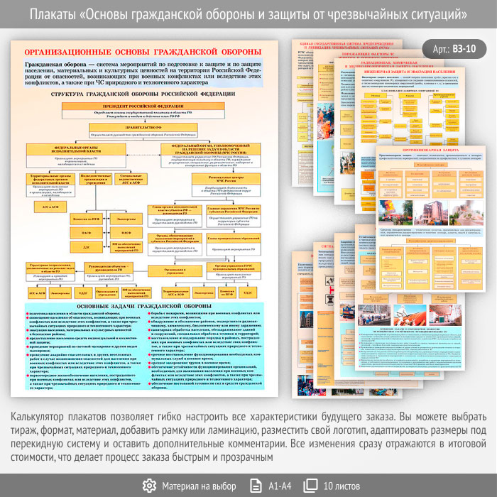 Плакаты «Основы гражданской обороны и защиты от чрезвычайных ситуаций» (ВЗ-10, 10 листов) в Улан-Удэ купить