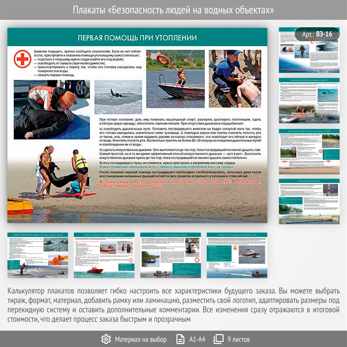 Плакаты «Безопасность людей на водных объектах» (ВЗ-16, 9 листов) в Улан-Удэ купить