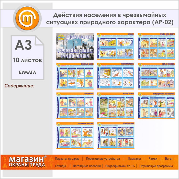 Плакаты «Действия населения в чрезвычайных ситуациях природного характера» (АР-02, бумага, А3, 10 листов) в Улан-Удэ купить