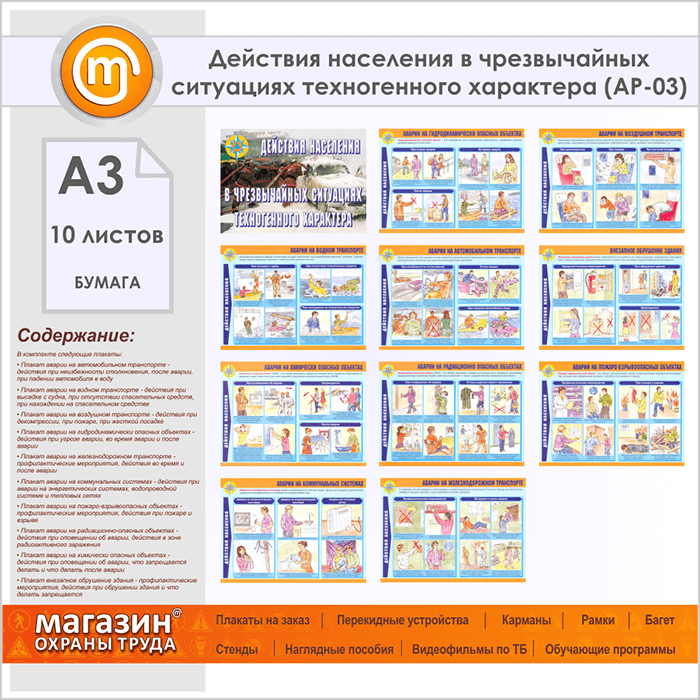 Плакаты «Действия населения в чрезвычайных ситуациях техногенного характера» (АР-03, бумага, А3, 10 листов) в Улан-Удэ купить