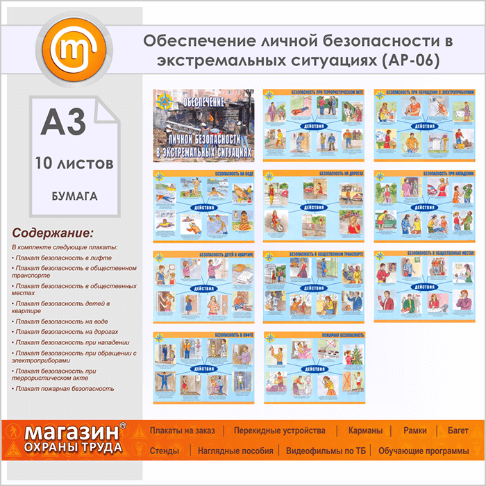 Плакаты «Обеспечение личной безопасности в экстремальных ситуациях» (АР-06, бумага, А3, 10 листов) в Улан-Удэ купить