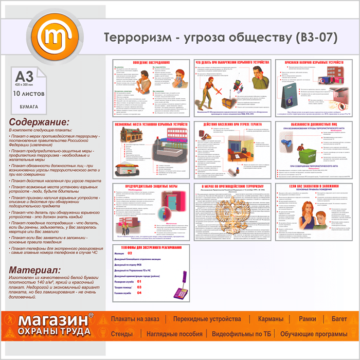 Плакаты «Терроризм - угроза обществу» (ВЗ-07, бумага, А3, 10 листов) в Улан-Удэ купить