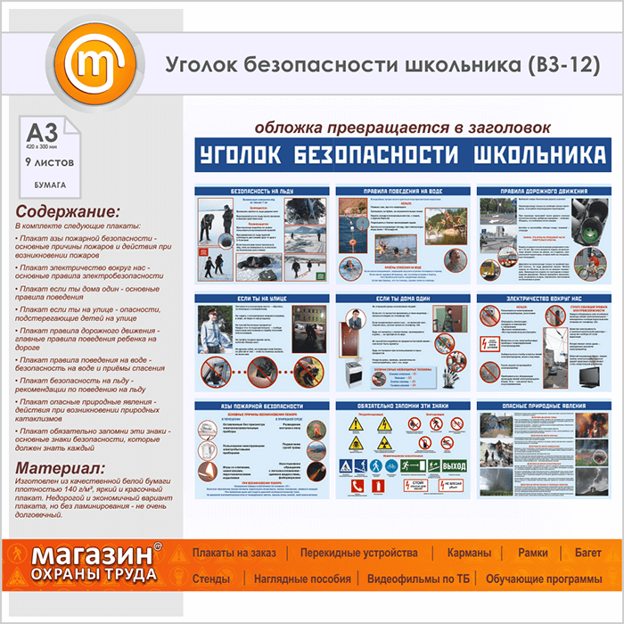 Плакаты «Уголок безопасности школьника» (ВЗ-12, бумага, А3, 10 листов) в Улан-Удэ купить