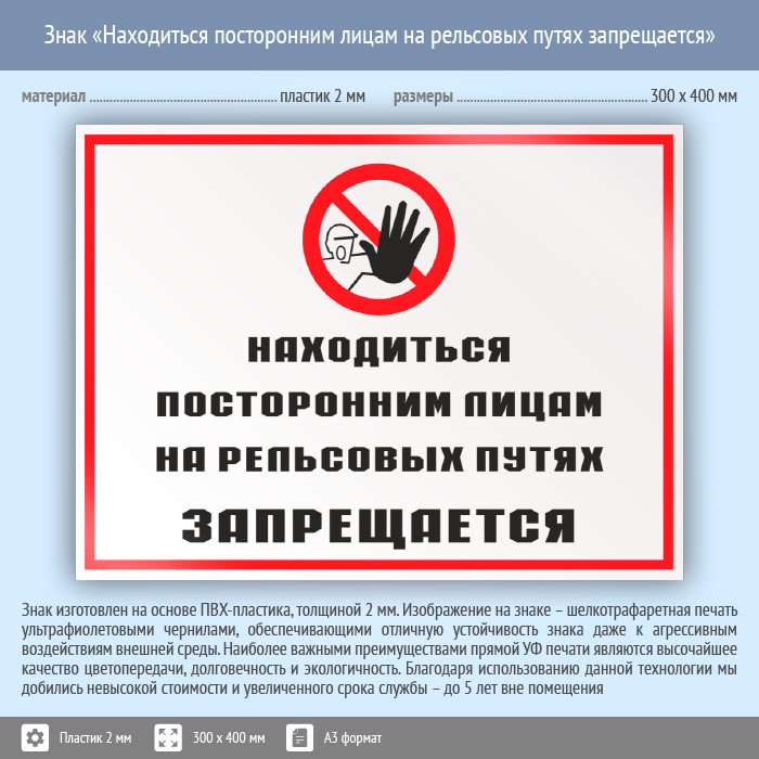 Знак «Находиться посторонним лицам на рельсовых путях запрещается», КЗ-25 (пластик, 400х300 мм) в Улан-Удэ купить