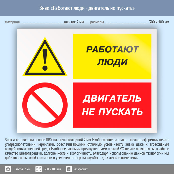 Знак «Работают люди - двигатель не пускать», КЗ-82 (пластик, 400х300 мм) в Улан-Удэ купить