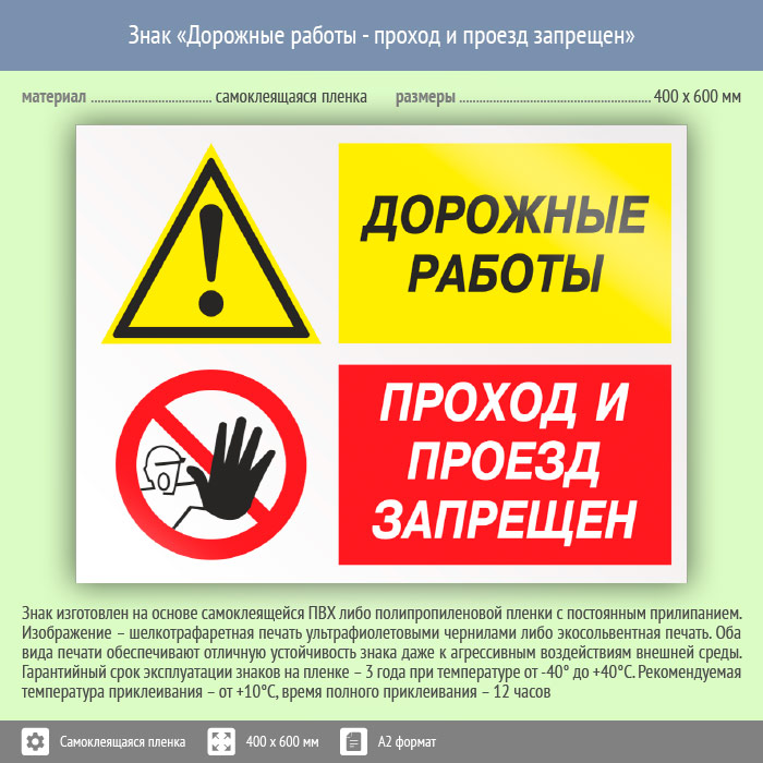 Знак «Дорожные работы - проход и проезд запрещен», КЗ-20 (пленка, 600х400 мм) в Улан-Удэ купить