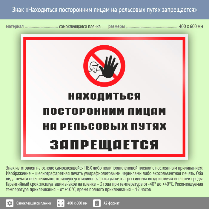 Знак «Находиться посторонним лицам на рельсовых путях запрещается», КЗ-25 (пленка, 600х400 мм) в Улан-Удэ купить
