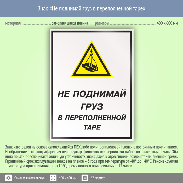 Знак «Не поднимай груз в переполненной таре», КЗ-26 (пленка, 400х600 мм) в Улан-Удэ купить