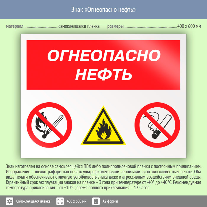 Знак «Огнеопасно нефть», КЗ-31 (пленка, 600х400 мм) в Улан-Удэ купить