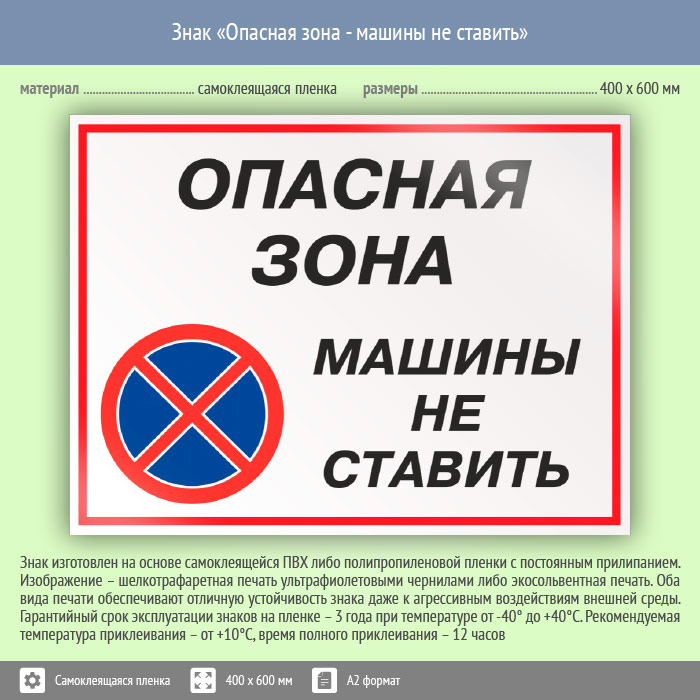 Знак «Опасная зона - машины не ставить», КЗ-32 (пленка, 600х400 мм) в Улан-Удэ купить