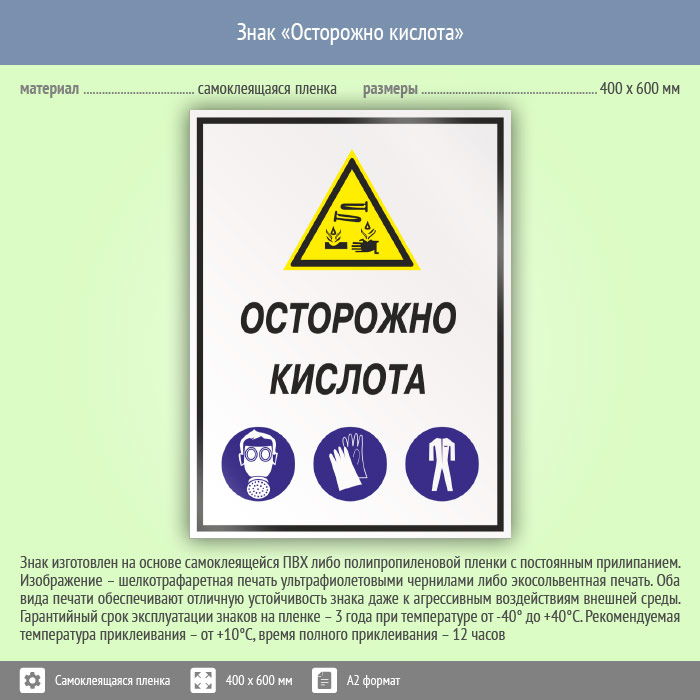 Знак «Осторожно кислота», КЗ-61 (пленка, 400х600 мм) в Улан-Удэ купить