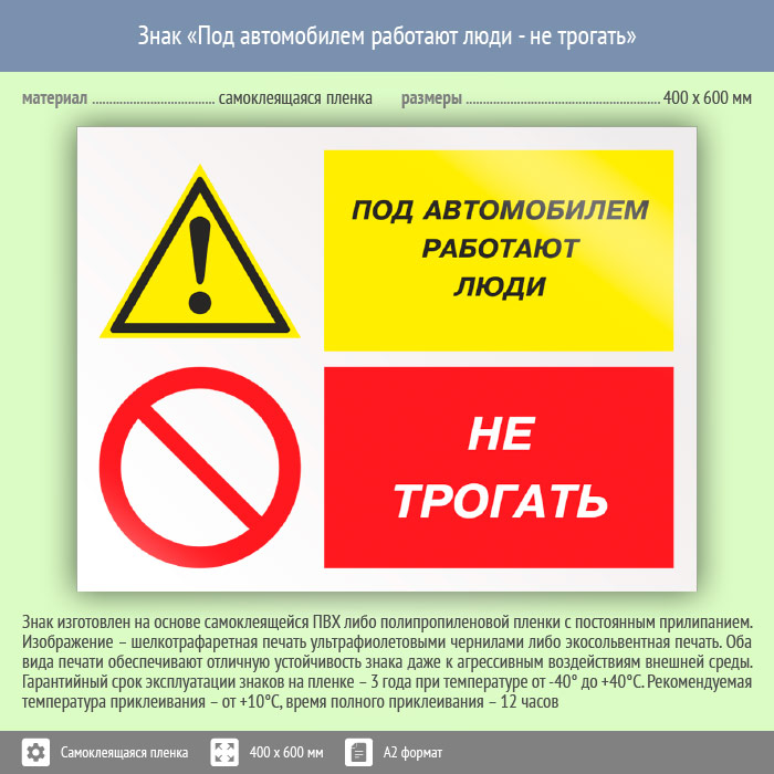Знак «Под автомобилем работают люди - не трогать», КЗ-66 (пленка, 600х400 мм) в Улан-Удэ купить