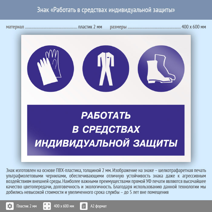 Знак «Работать в средствах индивидуальной защиты», КЗ-81 (пластик, 600х400 мм) в Улан-Удэ купить