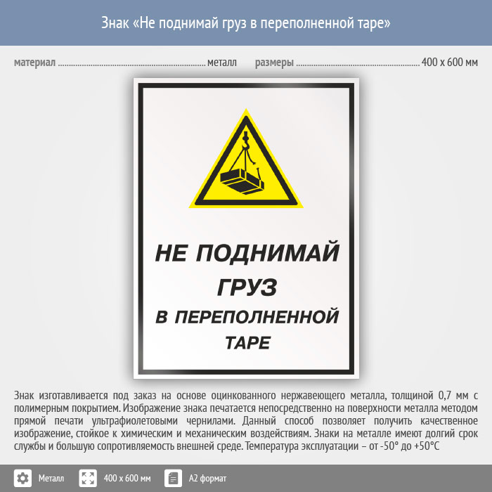 Знак «Не поднимай груз в переполненной таре», КЗ-26 (металл, 400х600 мм) в Улан-Удэ купить