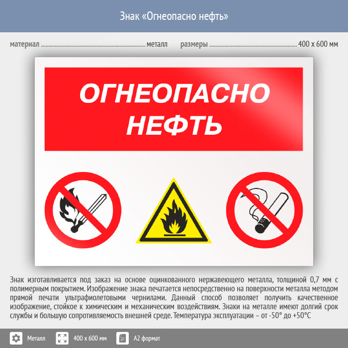 Знак «Огнеопасно нефть», КЗ-31 (металл, 600х400 мм) в Улан-Удэ купить
