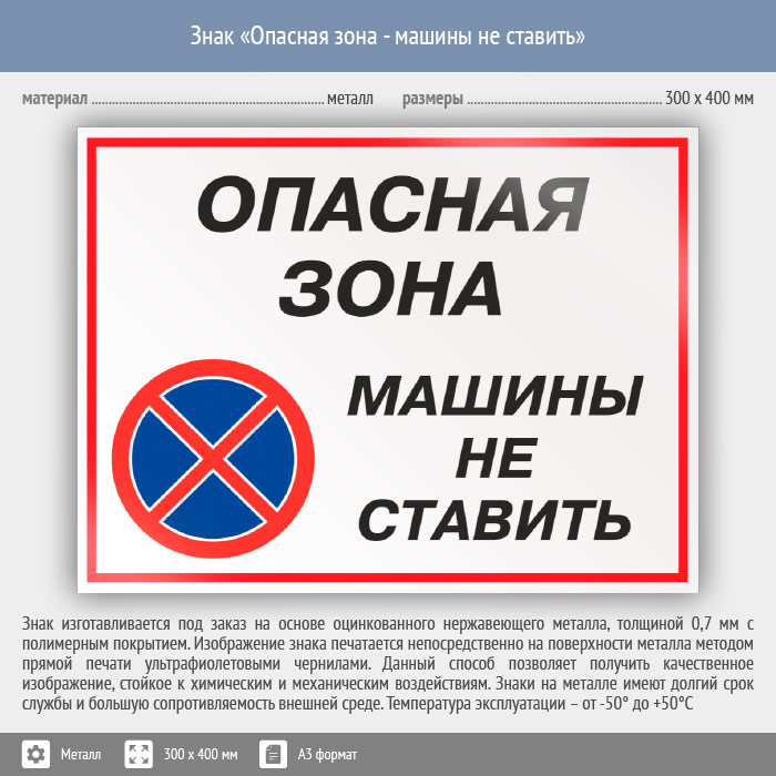 Знак «Опасная зона - машины не ставить», КЗ-32 (металл, 400х300 мм) в Улан-Удэ купить