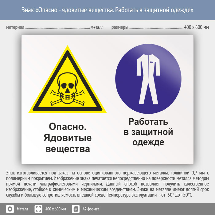 Знак «Опасно - ядовитые вещества. Работать в защитной одежде», КЗ-42 (металл, 600х400 мм) в Улан-Удэ купить