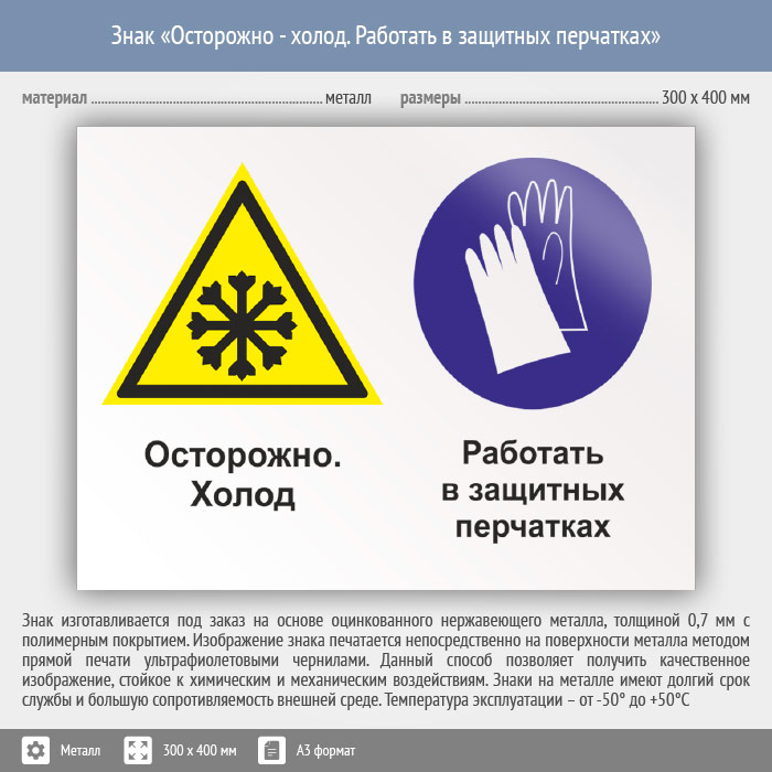 Знак «Осторожно - холод. Работать в защитных перчатках», КЗ-59 (металл, 400х300 мм) в Улан-Удэ купить