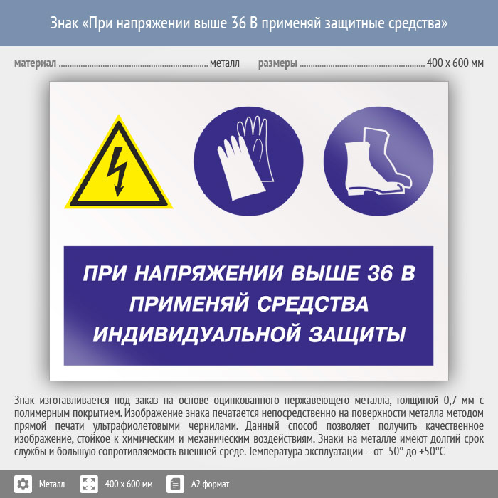 Знак «При напряжении выше 36 В применяй защитные средства», КЗ-71 (металл, 600х400 мм) в Улан-Удэ купить