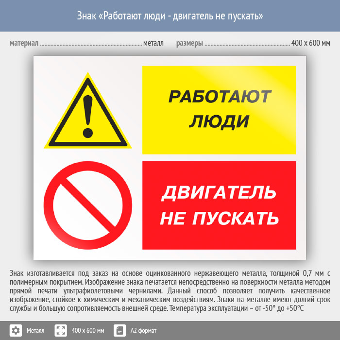 Знак «Работают люди - двигатель не пускать», КЗ-82 (металл, 600х400 мм) в Улан-Удэ купить