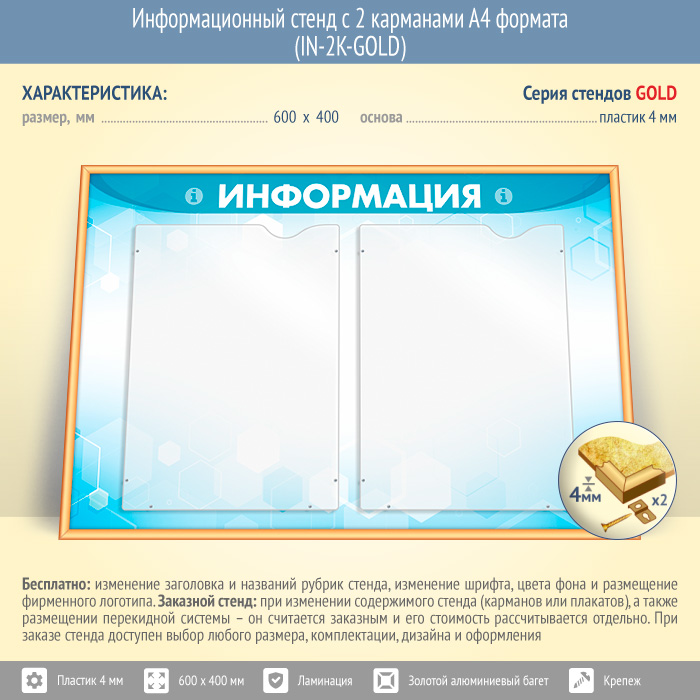 Информационный стенд с 2 карманами А4 формата (IN-2K-GOLD) в Улан-Удэ купить