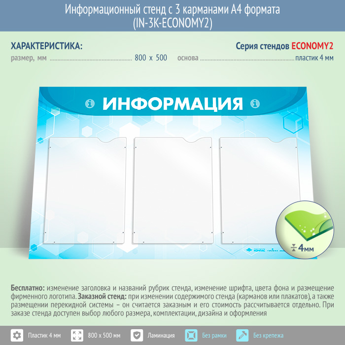 Информационный стенд с 3 карманами А4 формата (IN-3K-ECONOMY2) в Улан-Удэ купить