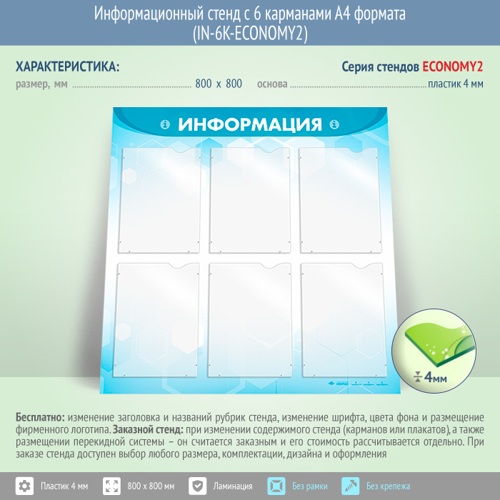 Информационный стенд с 6 карманами А4 формата (IN-6K-ECONOMY2) в Улан-Удэ купить
