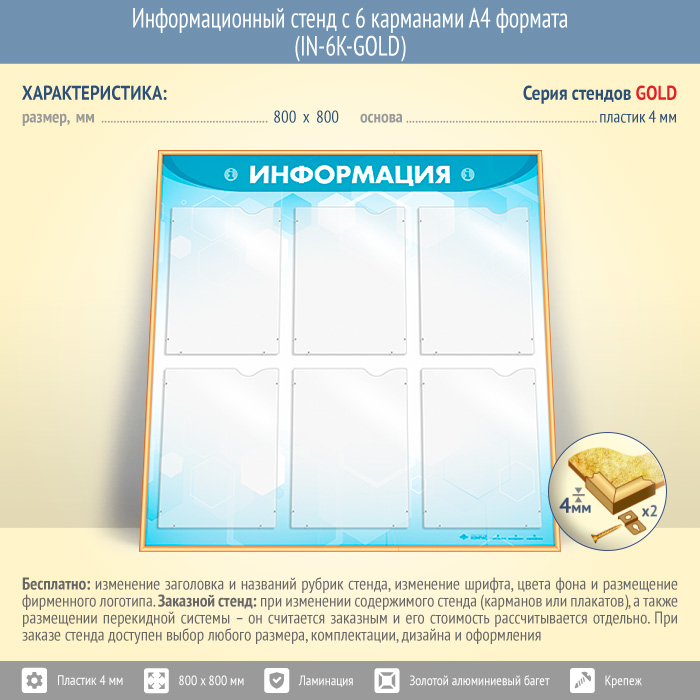 Информационный стенд с 6 карманами А4 формата (IN-6K-GOLD) в Улан-Удэ купить