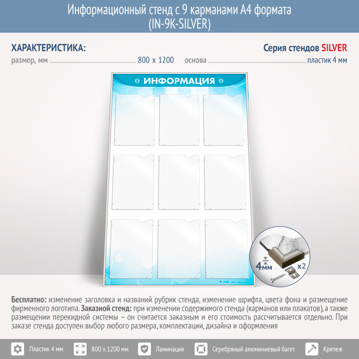 Информационный стенд с 9 карманами А4 формата (IN-9K-SILVER) в Улан-Удэ купить