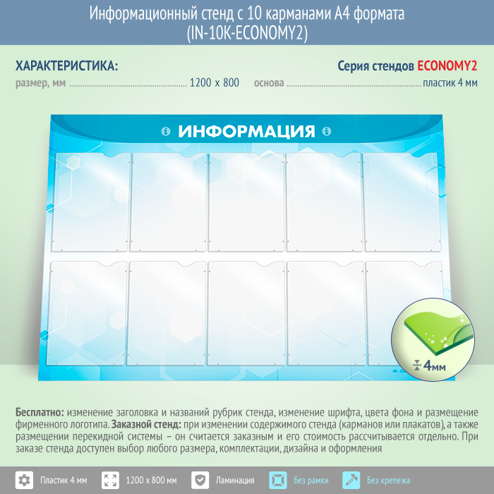 Информационный стенд с 10 карманами А4 формата (IN-10K-ECONOMY2) в Улан-Удэ купить