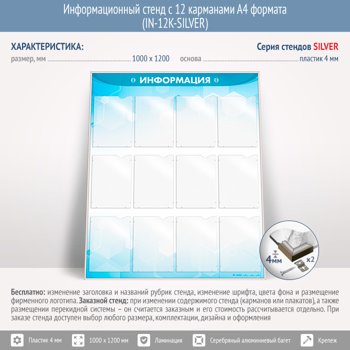 Информационный стенд с 12 карманами А4 формата (IN-12K-SILVER) в Улан-Удэ купить