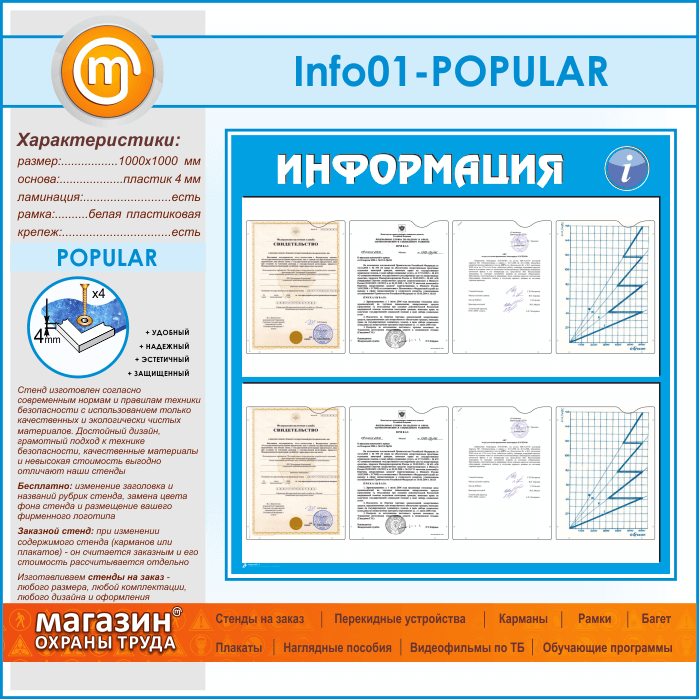 Стенд «Информация» с 8 карманами А4 формата (IN-01-POPULAR) в Улан-Удэ купить