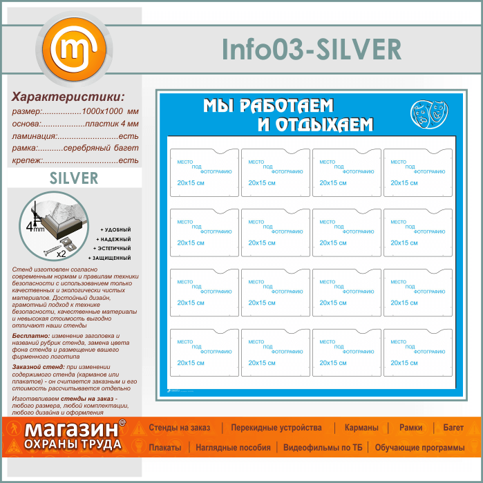 Стенд «Мы работаем и отдыхаем» с 16 карманами А5 формата (IN-03-SILVER) в Улан-Удэ купить