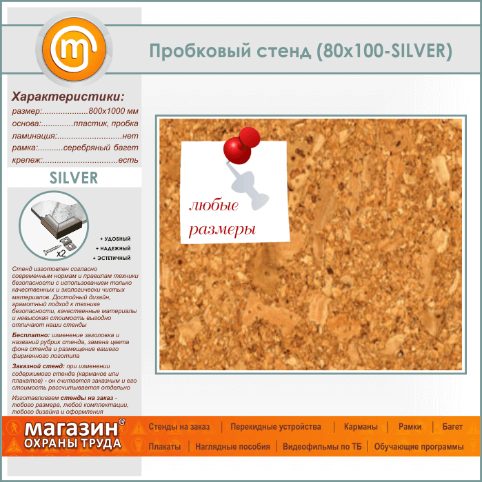 Пробковая доска, 100х80 см (IN-05-SILVER) в Улан-Удэ купить