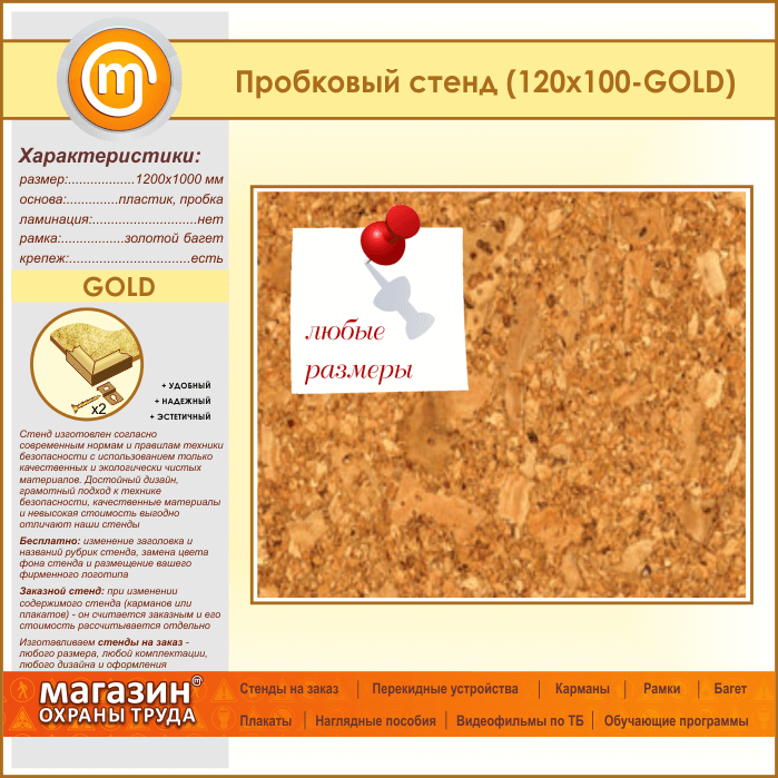 Пробковая доска, 120х100 см (IN-05-GOLD) в Улан-Удэ купить