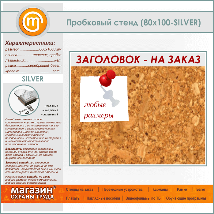 Пробковая доска с заголовком, 100х80 см (IN-06-SILVER) в Улан-Удэ купить
