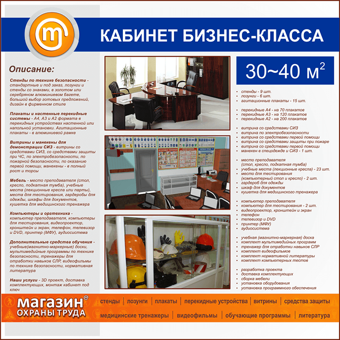 | Площадь кабинета: | 30-40 м2 |