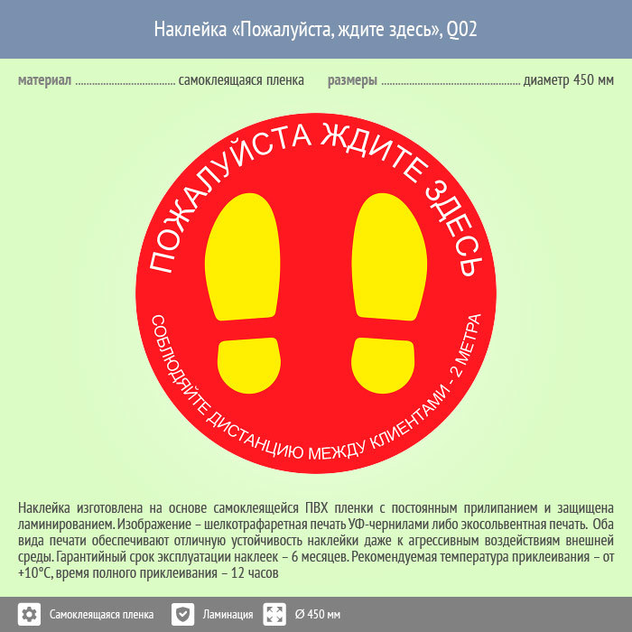 Наклейка на пол «Пожалуйста, ждите здесь», Q02 (пленка c ламинированием, диаметр 450 мм) в Улан-Удэ купить