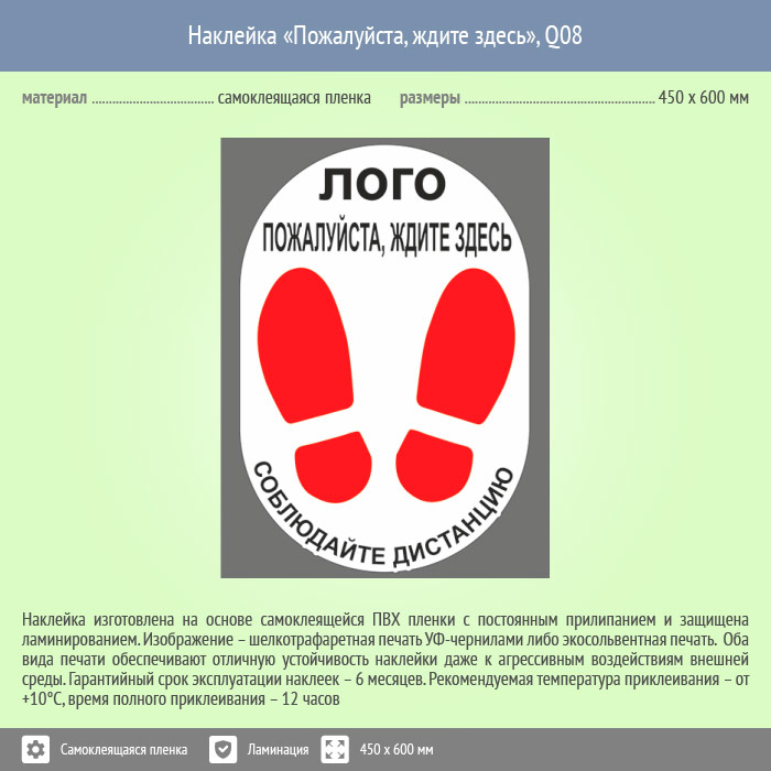 Наклейка на пол «Пожалуйста, ждите здесь», Q08 (пленка c ламинированием, 450х600 мм) в Улан-Удэ купить