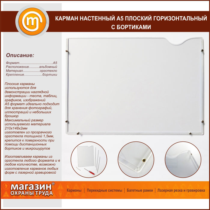 Карман настенный А5 плоский горизонтальный с бортиками в Улан-Удэ купить